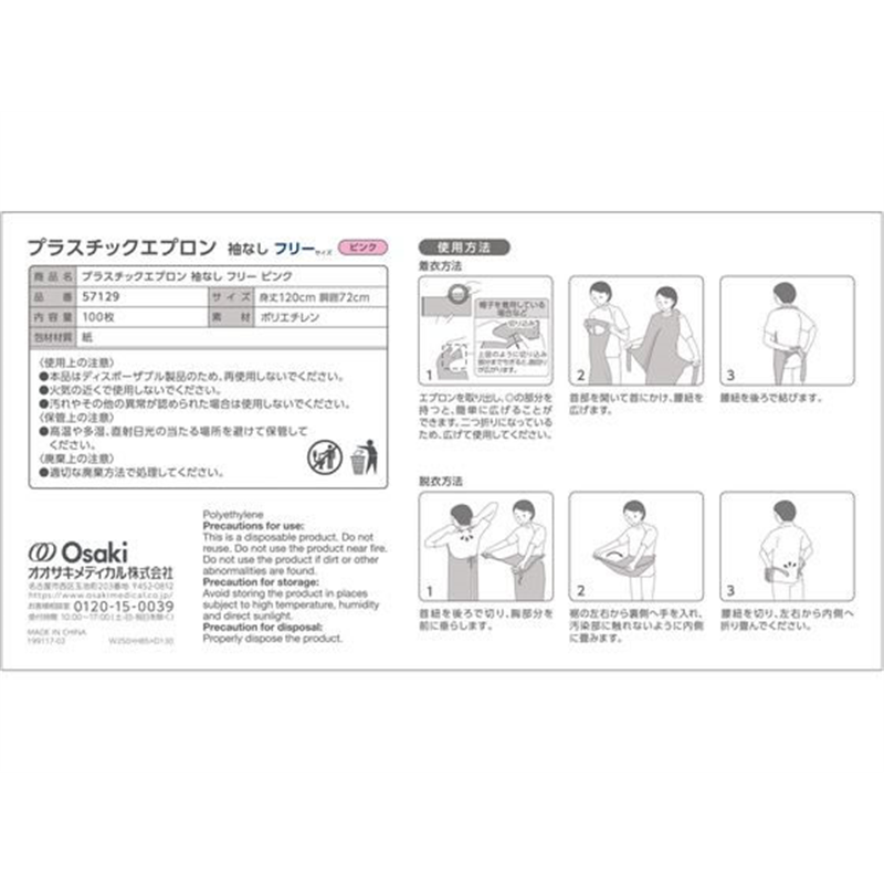 オオサキメディカル プラスチックエプロン 袖なし ピンク 100枚 57129 1個(ご注文単位1個)【直送品】
