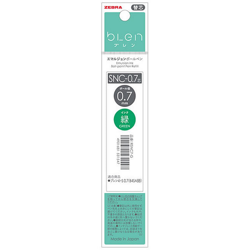 ゼブラ エマルジョンボールペン替え芯SNC-0.7芯 緑 10本 1箱(ご注文単位1箱)【直送品】