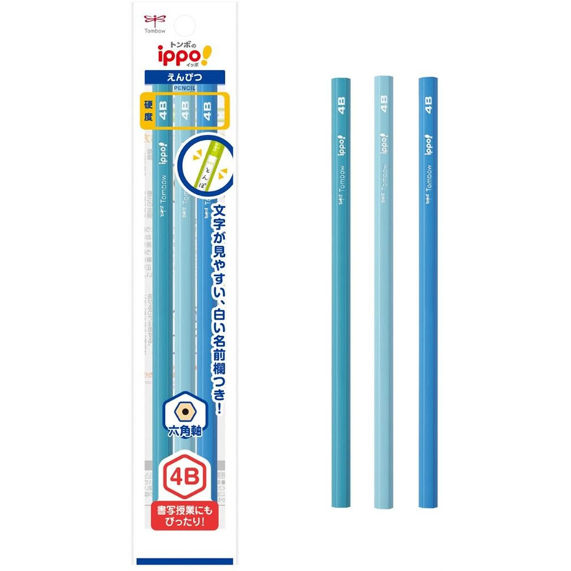 トンボ鉛筆 ippo!かきかた鉛筆4B 3本ライトブルー系 ACA-365C 1パック(ご注文単位1パック)【直送品】