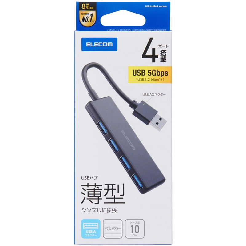 エレコム USBハブ A×4 USB3.2 ブラック U3H-H040BK 1個(ご注文単位1個)【直送品】