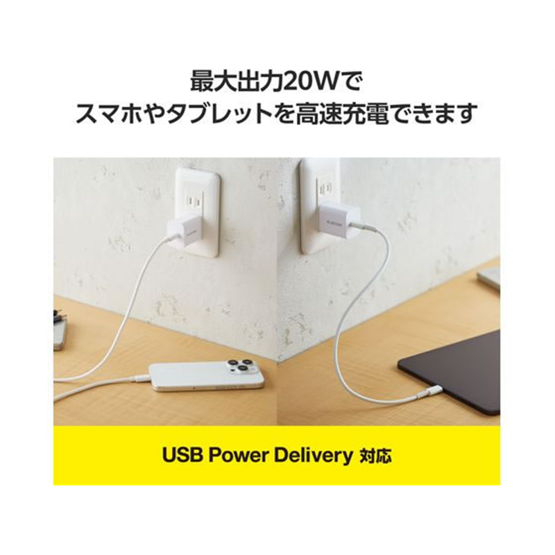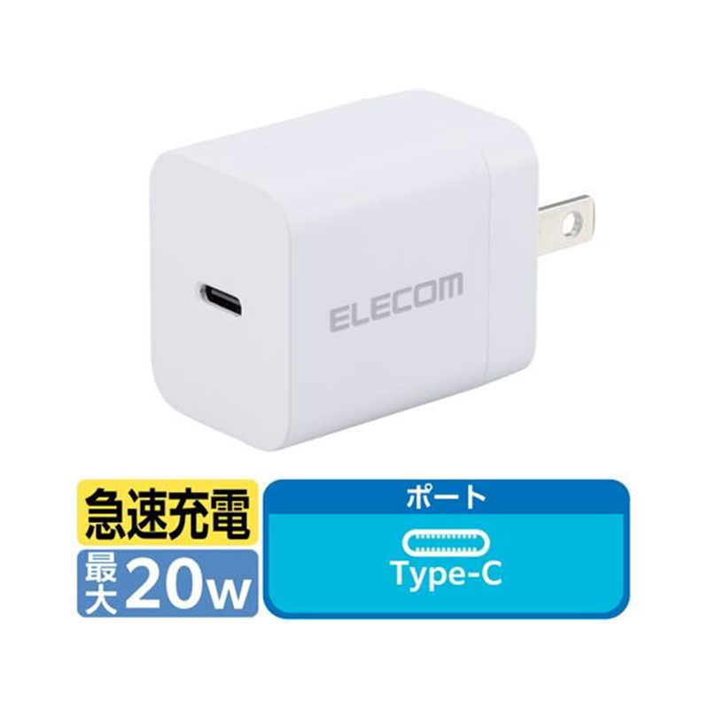 エレコム Type-C充電器 PD 20W ホワイト MPA-ACCP6820WH 1個(ご注文単位1個)【直送品】