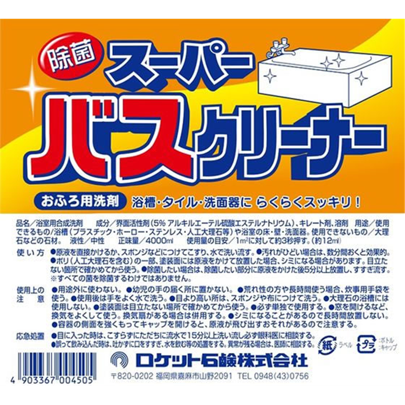 ロケット石鹸 スーパーバスクリーナー 4L 1個(ご注文単位1個)【直送品】