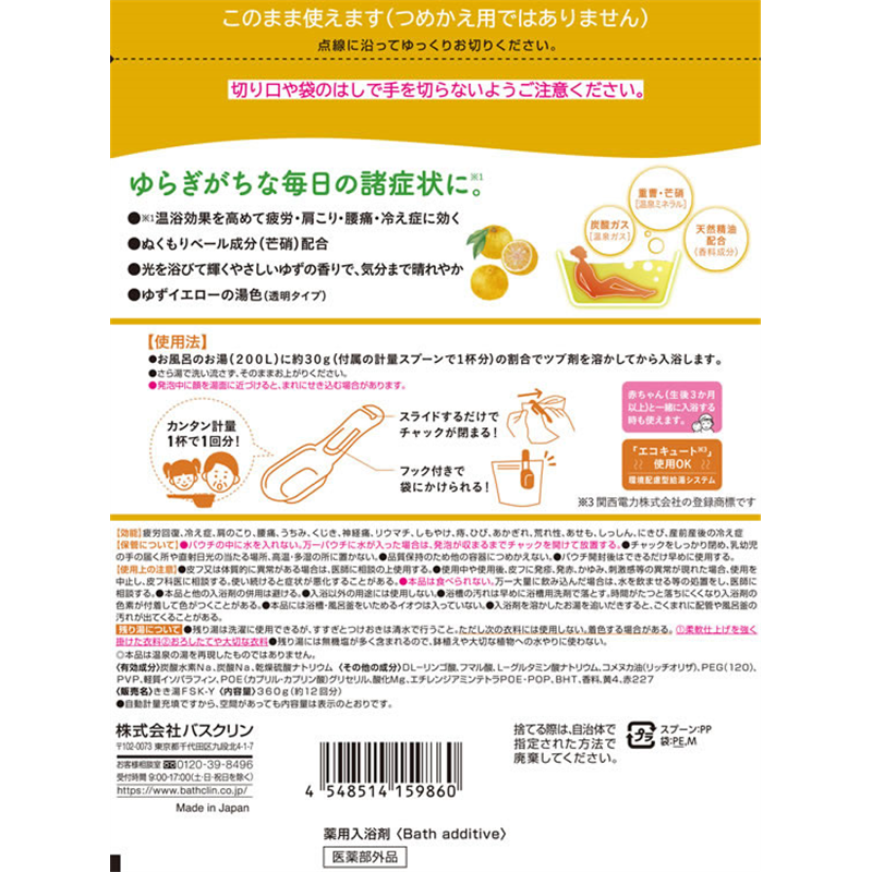 バスクリン きき湯 香る炭酸湯 ゆずの香り 360g 1個(ご注文単位1個)【直送品】