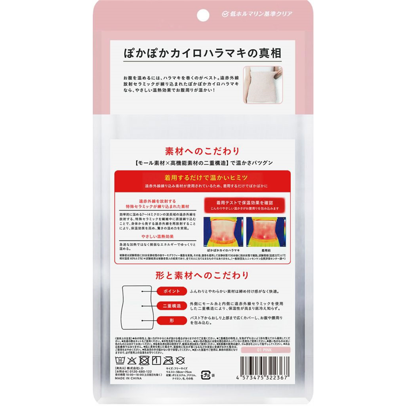 i.D ぽかぽかカイロハラマキ 01 PINK 1枚(ご注文単位1枚)【直送品】