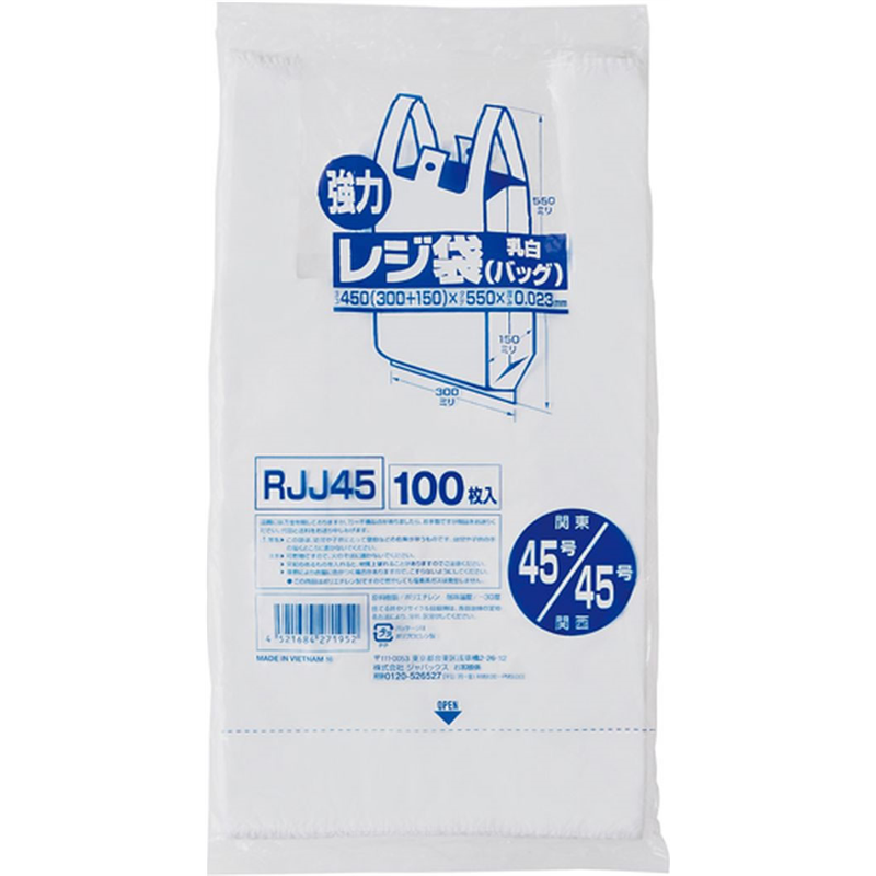 ジャパックス 業務用レジ袋 東45号・西45号 乳白100枚 RJJ45 1冊(ご注文単位1冊)【直送品】