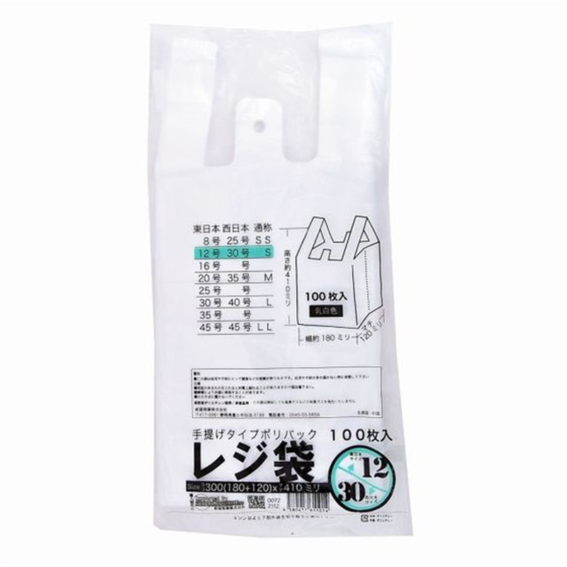 紺屋商事 レジ袋乳白東12西30号 100枚 00722112 1パック(ご注文単位1パック)【直送品】