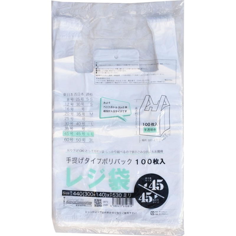 紺屋商事 レジ袋透明東45西45号 100枚 00722445 1パック(ご注文単位1パック)【直送品】