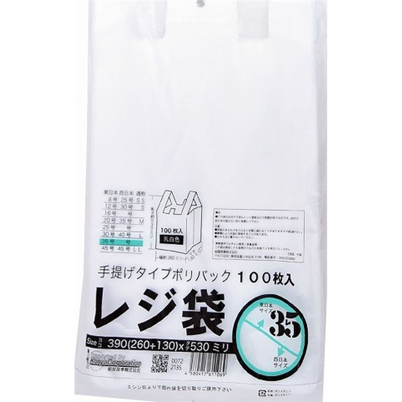 紺屋商事 レジ袋乳白東35号 100枚 00722135 1パック(ご注文単位1パック)【直送品】