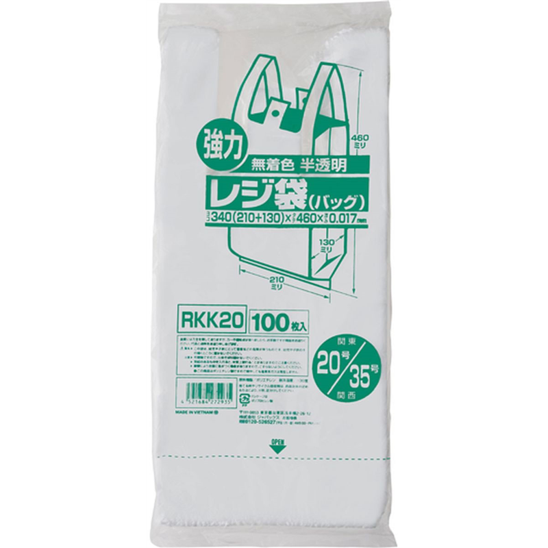 ジャパックス 業務用レジ袋 東20号・西35号 半透明 100枚 1冊(ご注文単位1冊)【直送品】