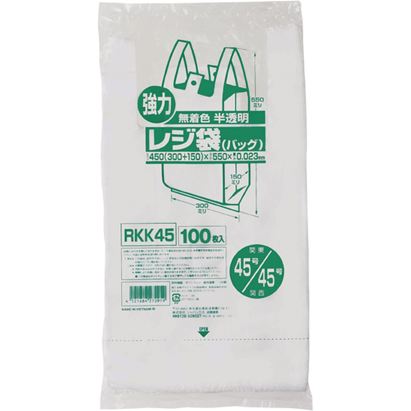 ジャパックス 業務用レジ袋 東45号・西45号 半透明 100枚 1冊(ご注文単位1冊)【直送品】