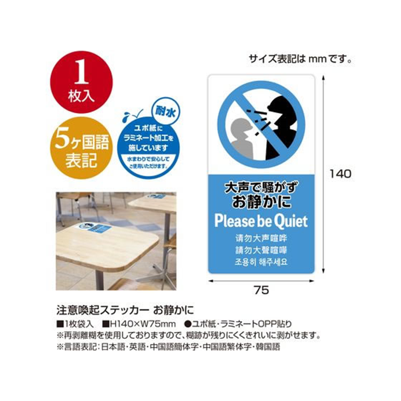 ササガワ 注意喚起ステッカー お静かに 24-552 1冊(ご注文単位1冊)【直送品】