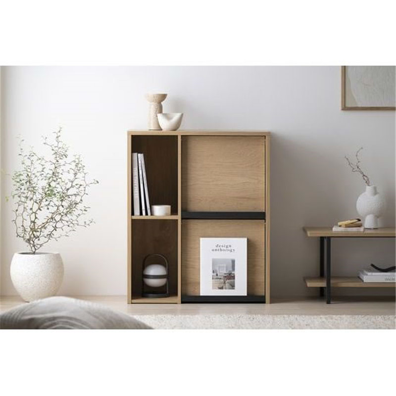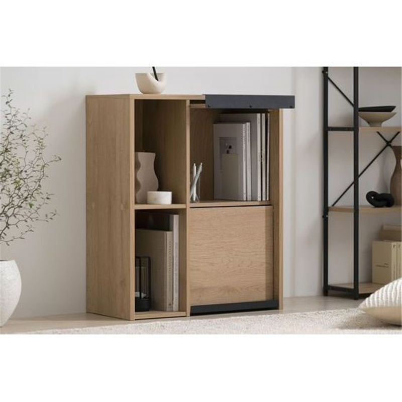 アイリスオーヤマ フラップ扉付きキャビネット ナチュラル/ブラック HFRC-600 1台(ご注文単位1台)【直送品】