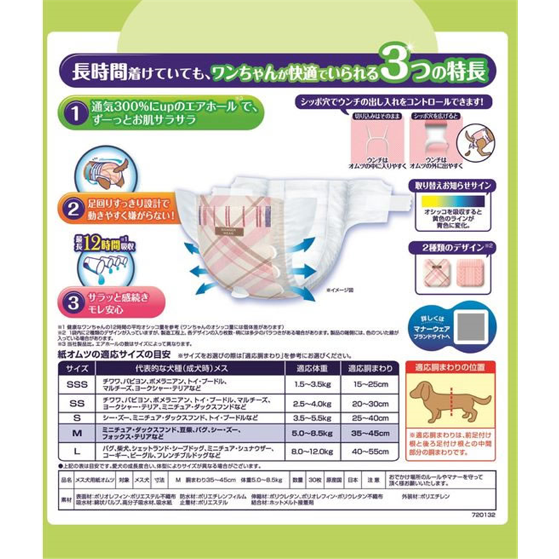 ユニチャーム マナーウェア 長時間快適オムツ 女の子 M 30枚 1袋(ご注文単位1袋)【直送品】