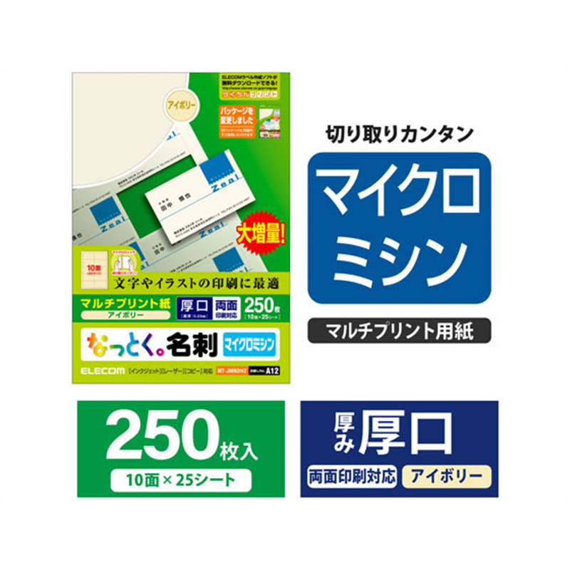 エレコム 名刺用紙 厚口 上質紙 アイボリー 250枚 MT-JMN2IVZ 1冊(ご注文単位1冊)【直送品】