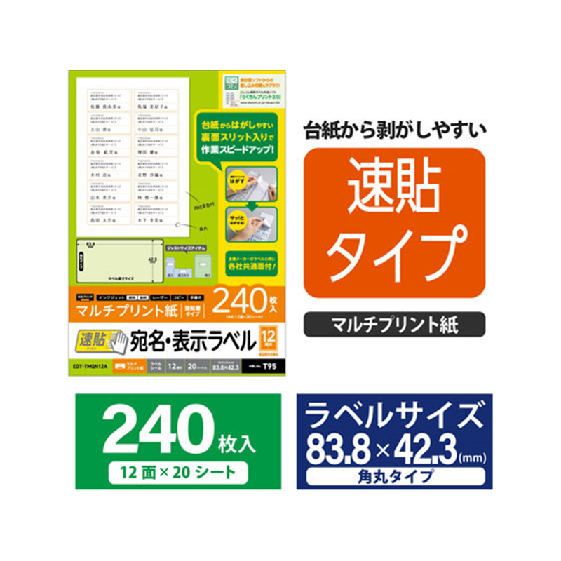エレコム 宛名表示ラベル 速貼 12面 20シート EDT-TMQN12A 1冊(ご注文単位1冊)【直送品】