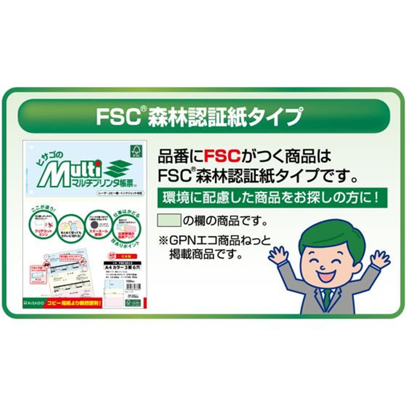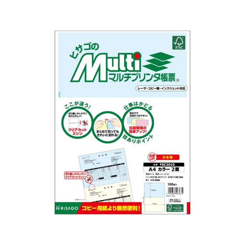 ヒサゴ マルチプリンタ帳票A4カラー2面 100枚 FSC2010 1冊(ご注文単位1冊)【直送品】