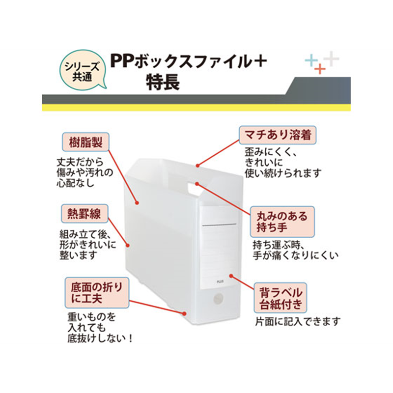 プラス PPボックスファイル+ A4E クリアーホワイト FL-125BF 76-008 1個(ご注文単位1個)【直送品】