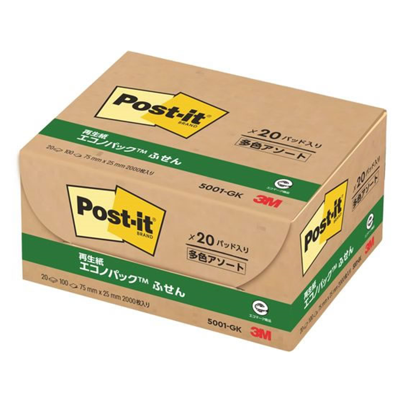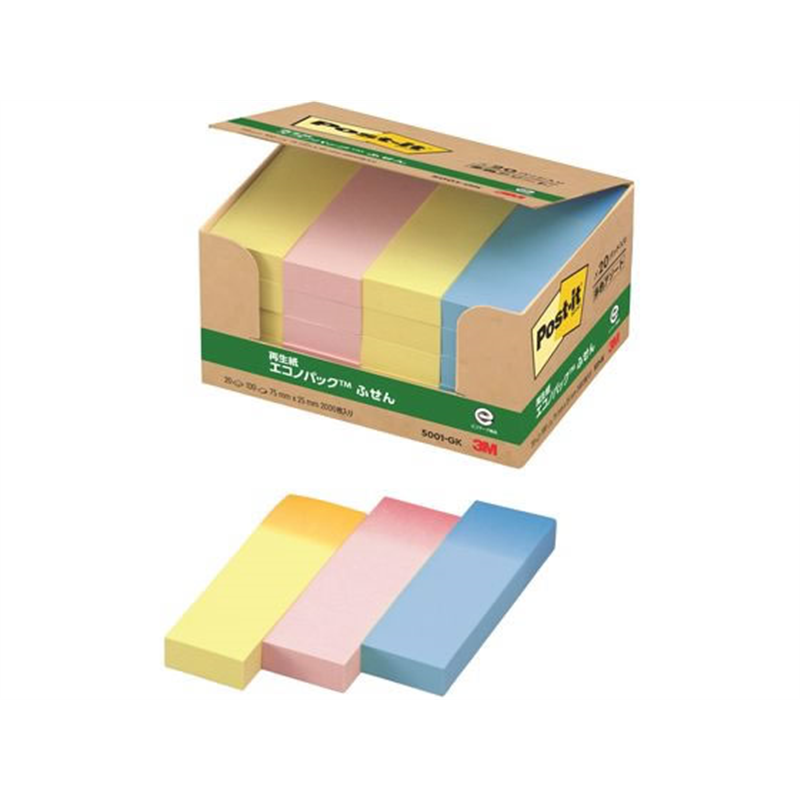 3M ポストイット 再生紙 エコノパック ふせん グラデーション・混色 1パック(ご注文単位1パック)【直送品】