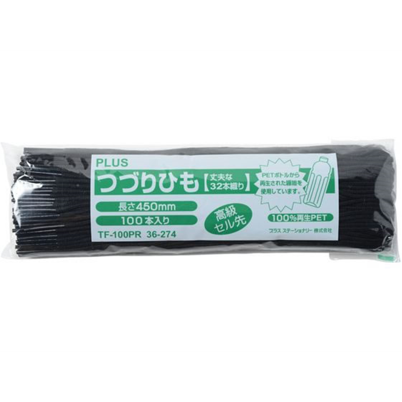 プラス つづりひも セル先 黒 TF-100PR 36-274 1束(ご注文単位1束)【直送品】