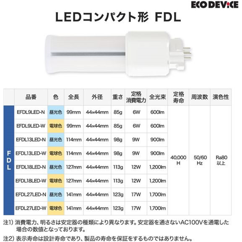 エコデバイス LEDコンパクト形 FDL27W相当 電球色 EFDL27LED-W 1本(ご注文単位1本)【直送品】