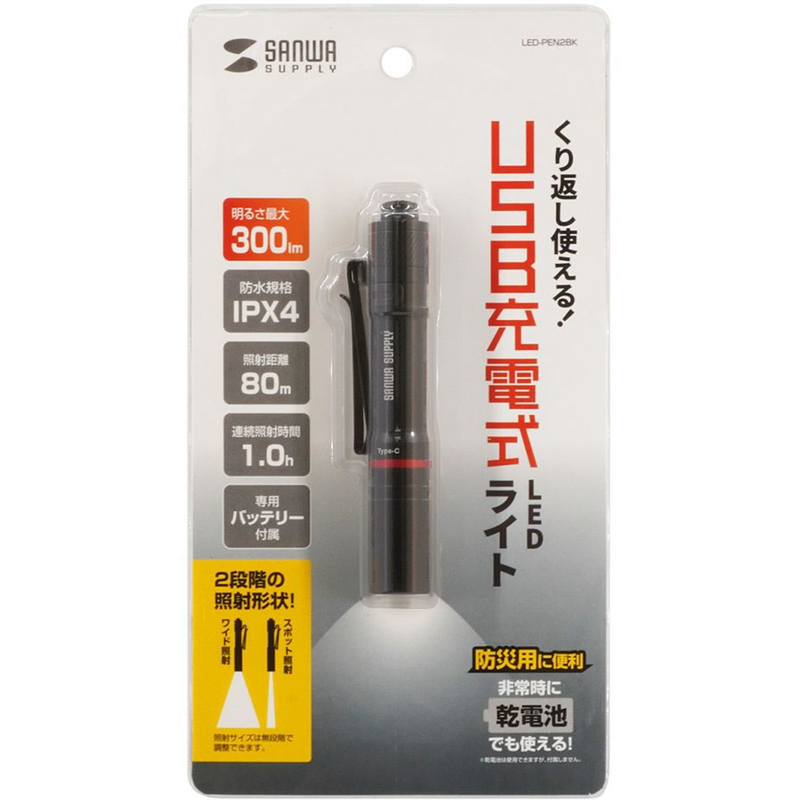 サンワサプライ ペン型ライト ショートタイプ LED-PEN2BK 1個(ご注文単位1個)【直送品】