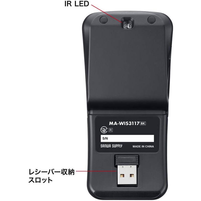 サンワサプライ 静音ワイヤレス IR LEDマウス MA-WIS3117BK 1個(ご注文単位1個)【直送品】