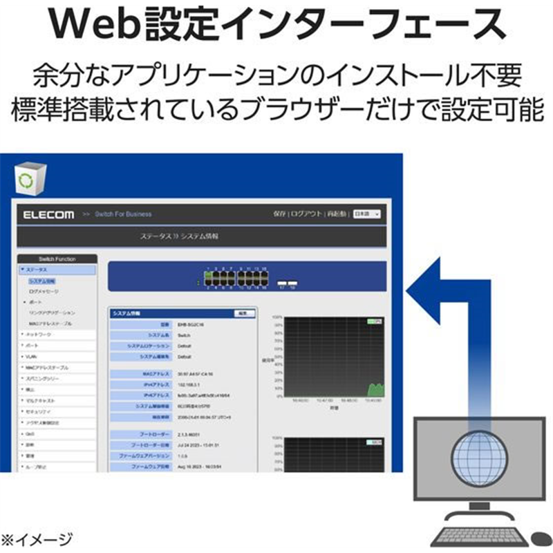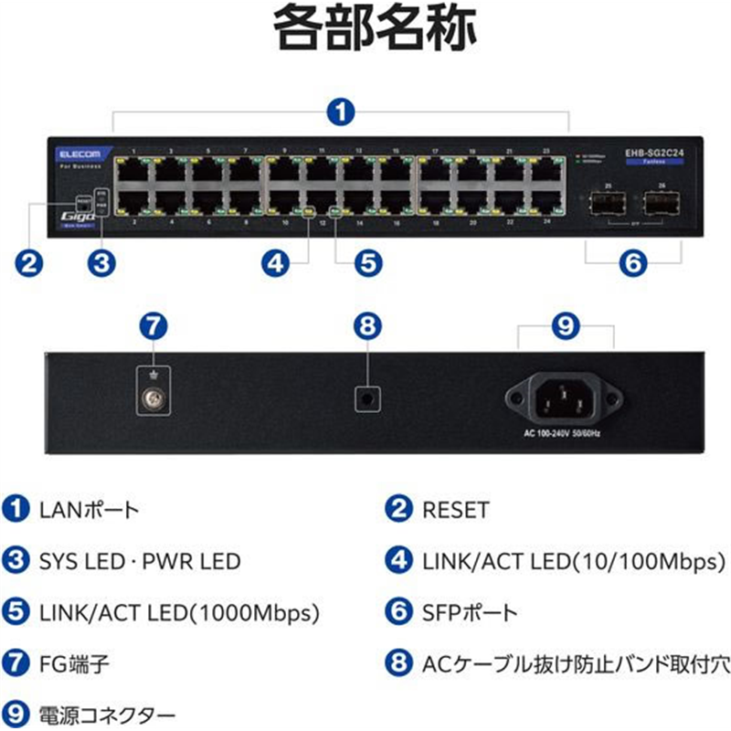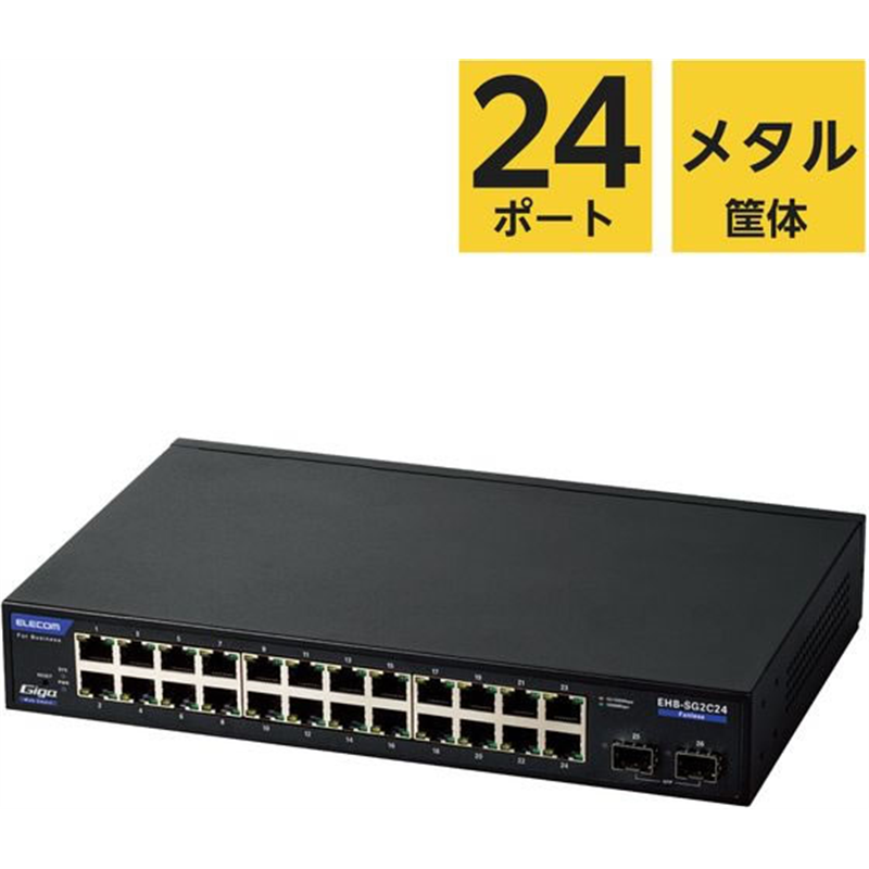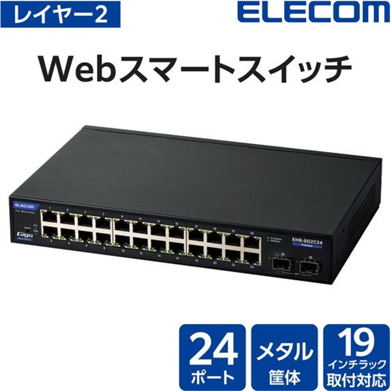 エレコム 法人向スイッチングハブ 24ポート WEBスマート 黒 EHB-SG2C24 1個(ご注文単位1個)【直送品】
