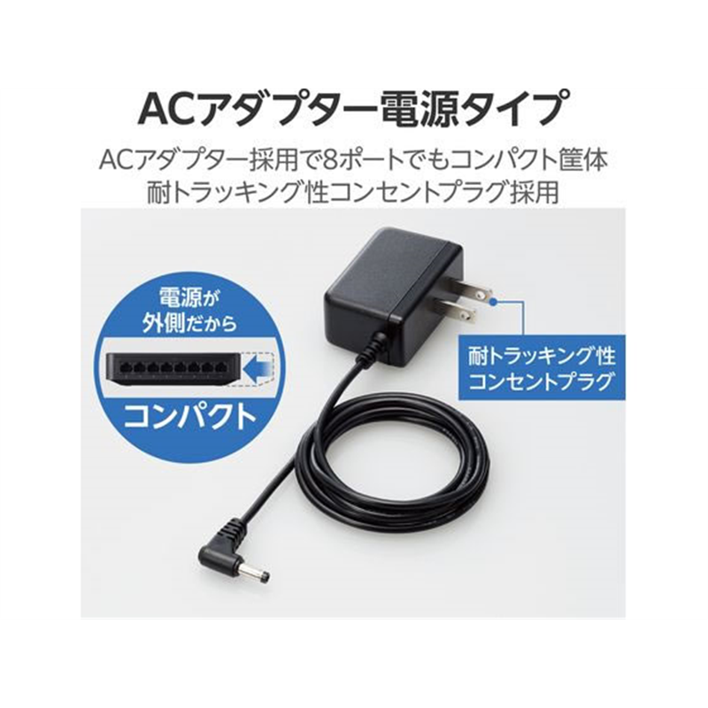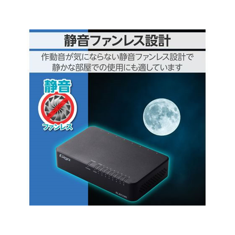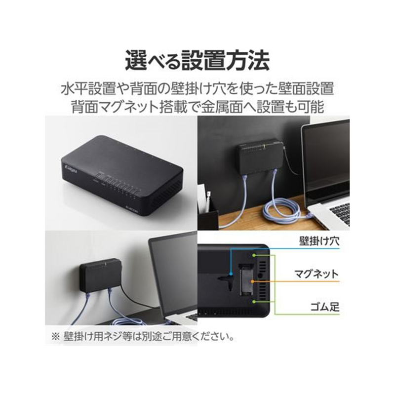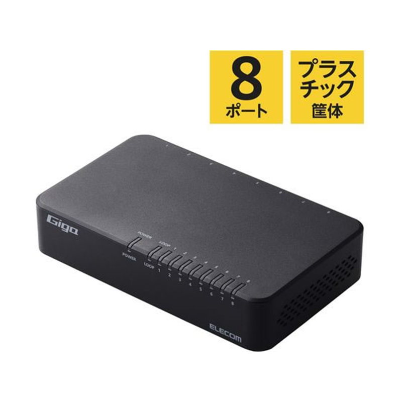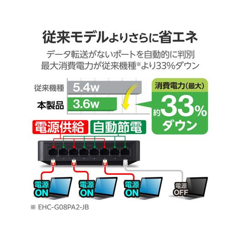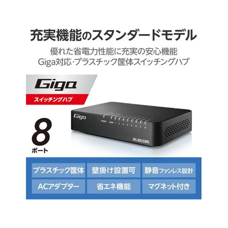 エレコム スイッチングハブ 8ポートGiga 磁石 ブラック EHC-G08PA4-JB 1個(ご注文単位1個)【直送品】