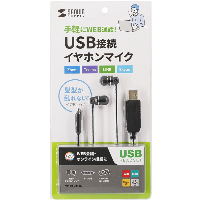 サンワサプライ USBイヤホンマイク MM-HSU21BK 1個(ご注文単位1個)【直送品】