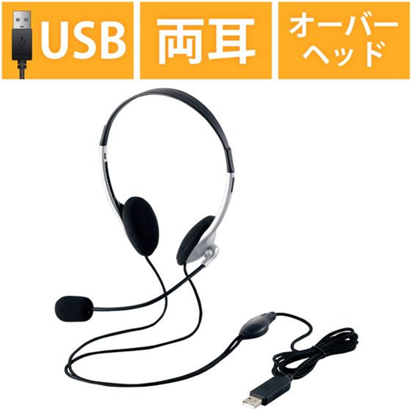 エレコム 有線ヘッドセット USB接続 両耳 シルバー HS-FBE01USV 1個(ご注文単位1個)【直送品】