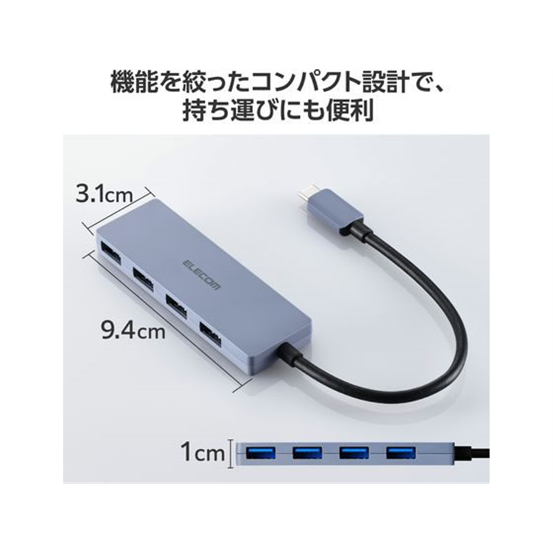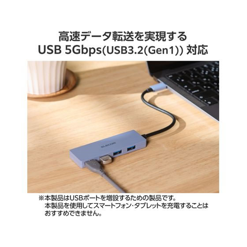 エレコム USBハブ USB3.2 15cm ネイビー U3HC-H040NV 1個(ご注文単位1個)【直送品】