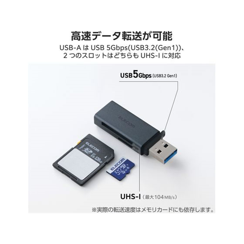 エレコム USB-A カードリーダー 2in1 高速転送 ブラック MR3-D20BK 1個(ご注文単位1個)【直送品】