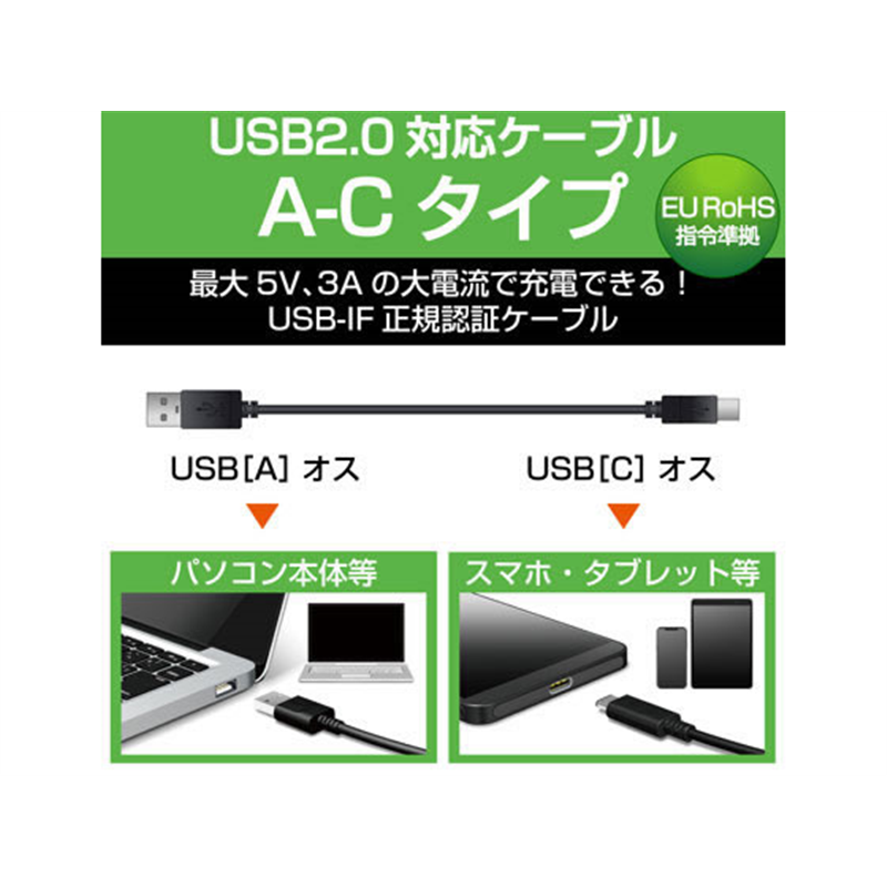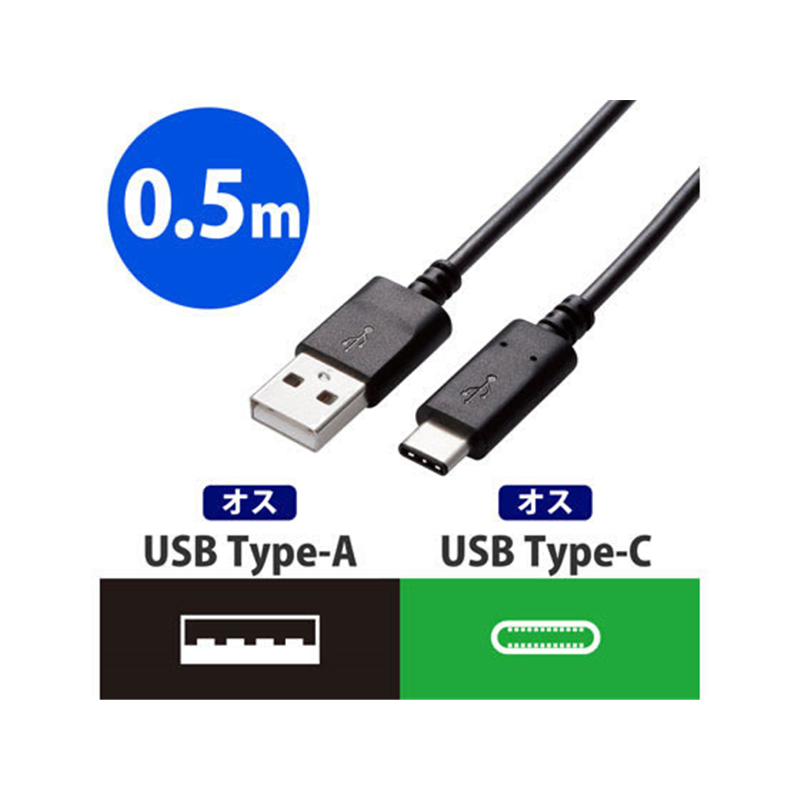 エレコム USB2.0ケーブル 認証品 A-C 50cm MPA-AC05NBK 1個(ご注文単位1個)【直送品】