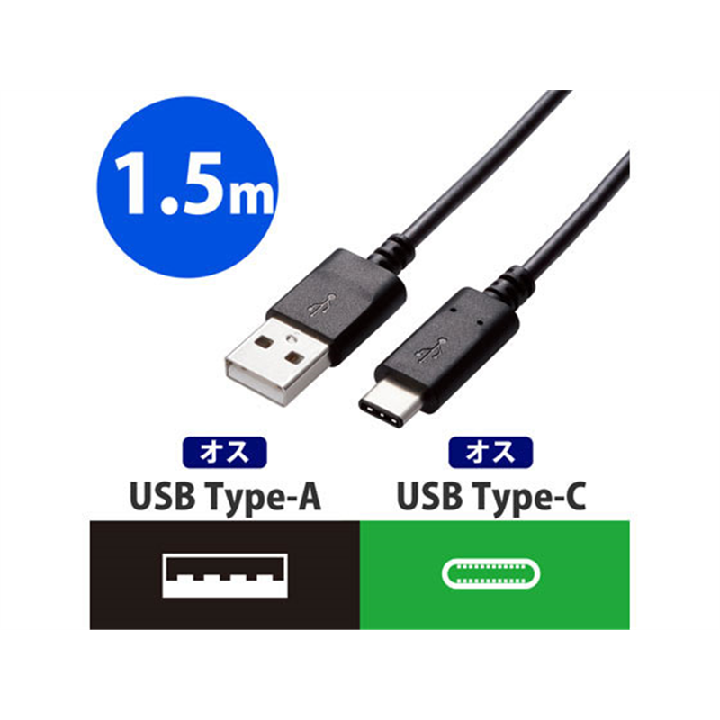 エレコム USB2.0ケーブル 認証品 A-C 1.5m MPA-AC15NBK 1個(ご注文単位1個)【直送品】