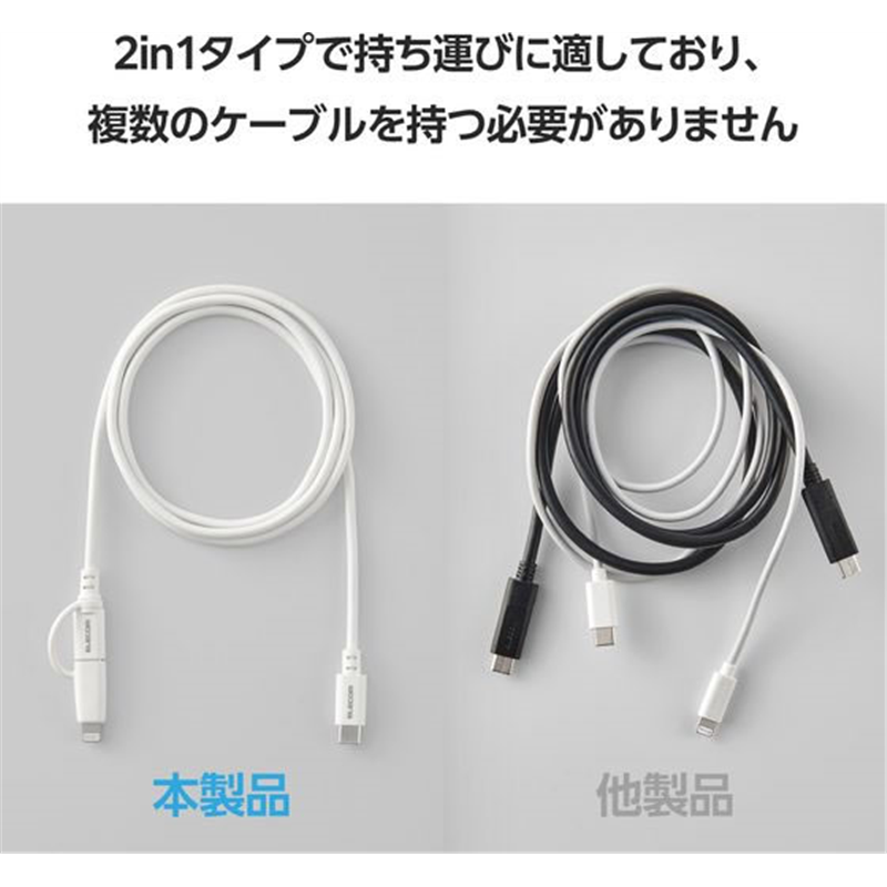 エレコム 2in1ケーブル USB-C+ライトニング 1.0m 白 MPA-CCLAD10WH 1個(ご注文単位1個)【直送品】