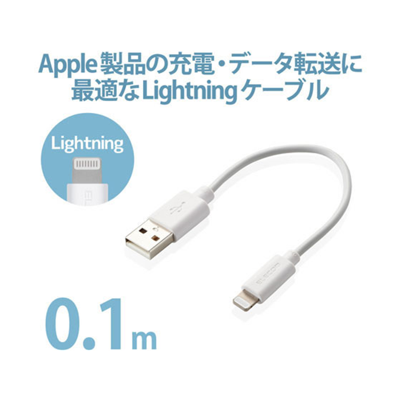 エレコム ライトニングケーブル 10cm データ通信 充電 MPA-FUAL01WH 1個(ご注文単位1個)【直送品】