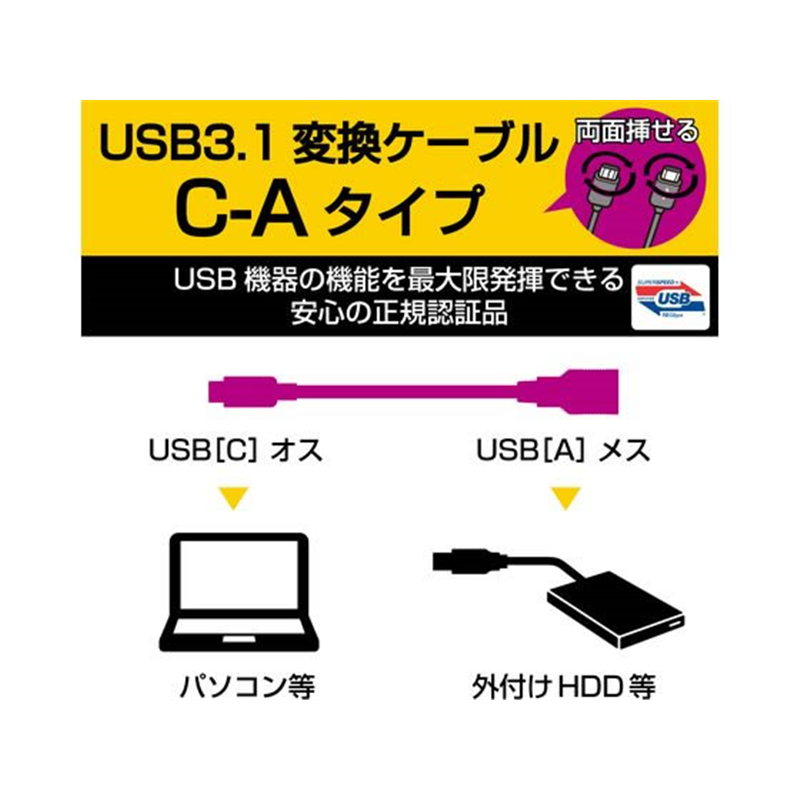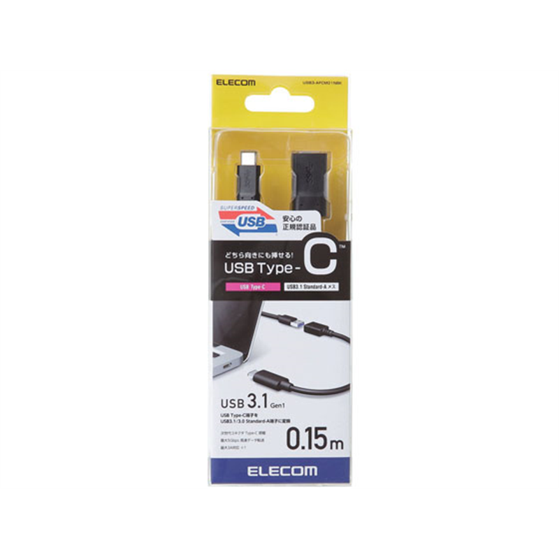 エレコム USB3.1ケーブル A-TypeC 15cm USB3-AFCM01NBK 1個(ご注文単位1個)【直送品】