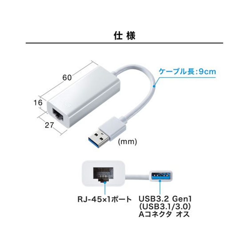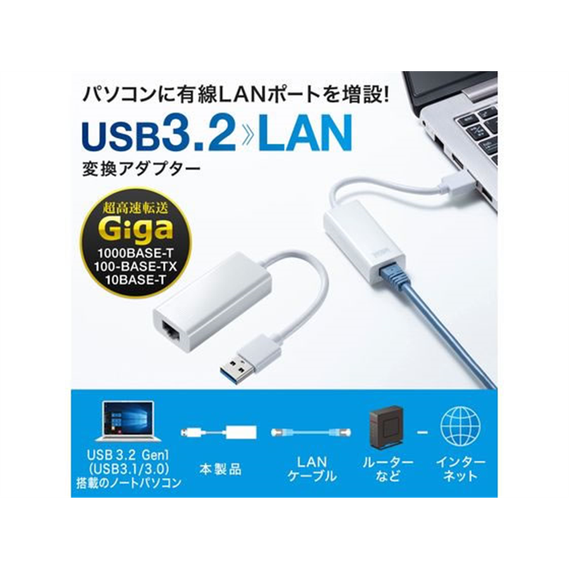 サンワサプライ USB3.2-LAN変換アダプタ(ホワイト) USB-CVLAN1WN 1個(ご注文単位1個)【直送品】