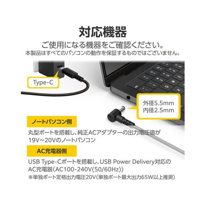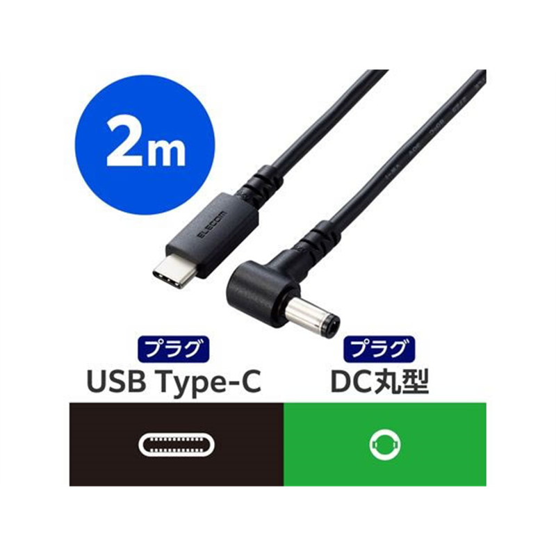 エレコム 充電ケーブル Type-C 丸コネクタ DC-PDF20BK 1個(ご注文単位1個)【直送品】