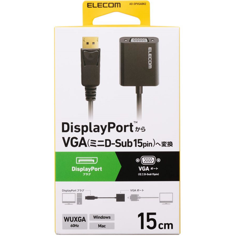 エレコム DisplayPort-VGA 変換アダプタ ブラック AD-DPVGABK2 1個(ご注文単位1個)【直送品】