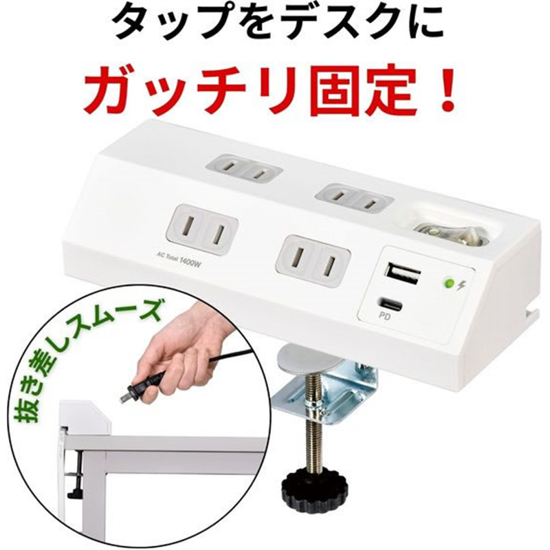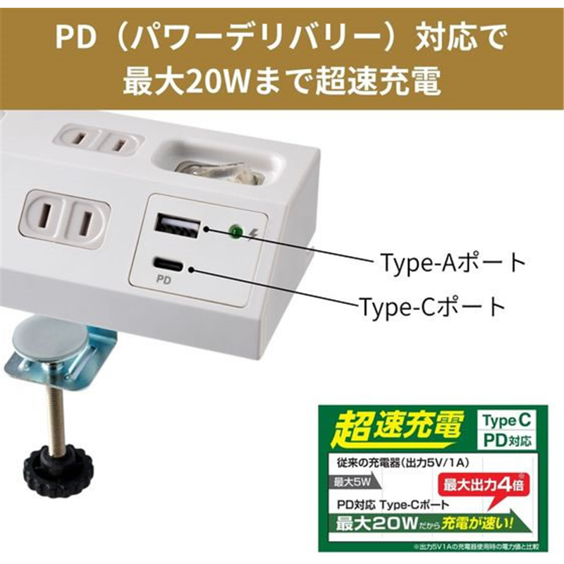 朝日電器 集中スイッチ付デスクタップ クランプ 4口2mUSBACPD対応 1個(ご注文単位1個)【直送品】
