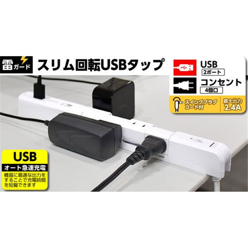朝日電器 USBタップ WBS-SL402USB(W) 1個(ご注文単位1個)【直送品】