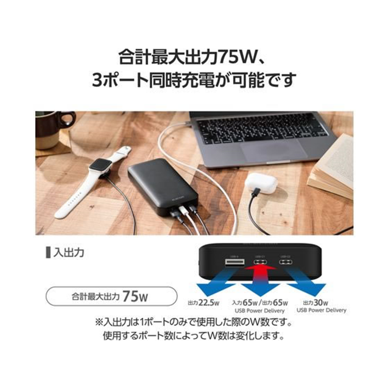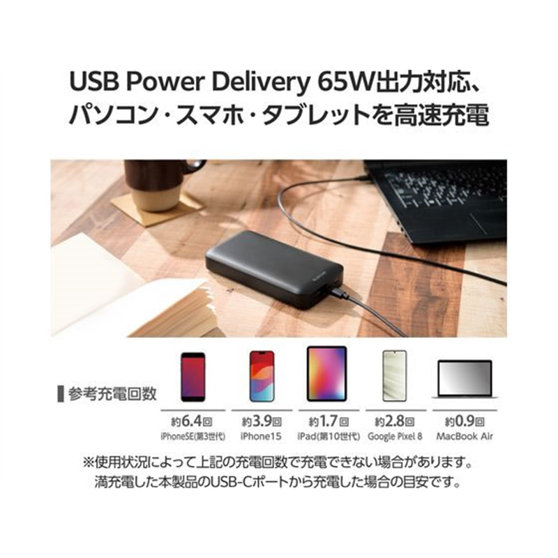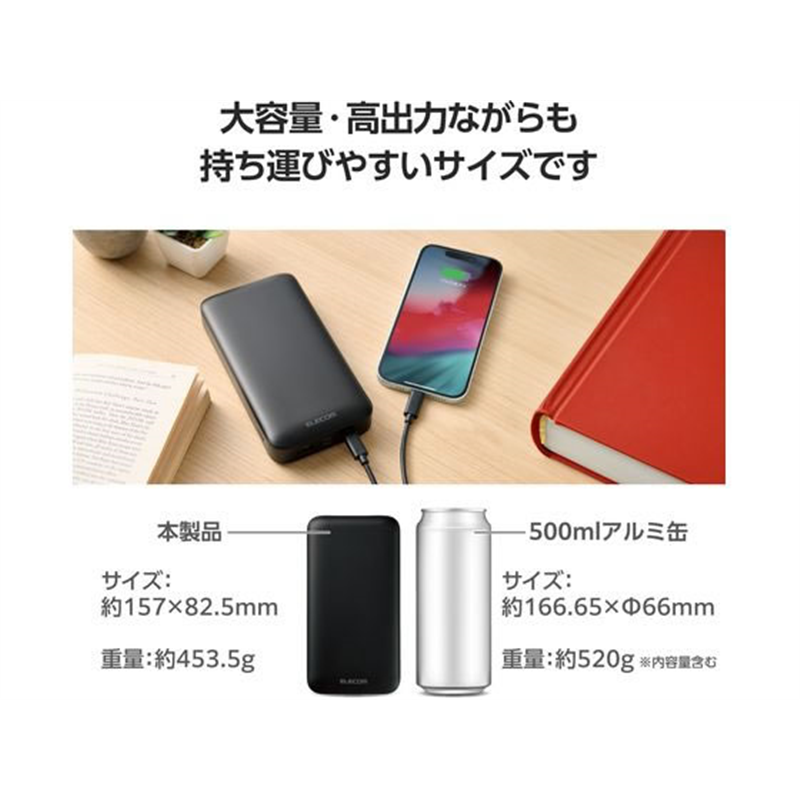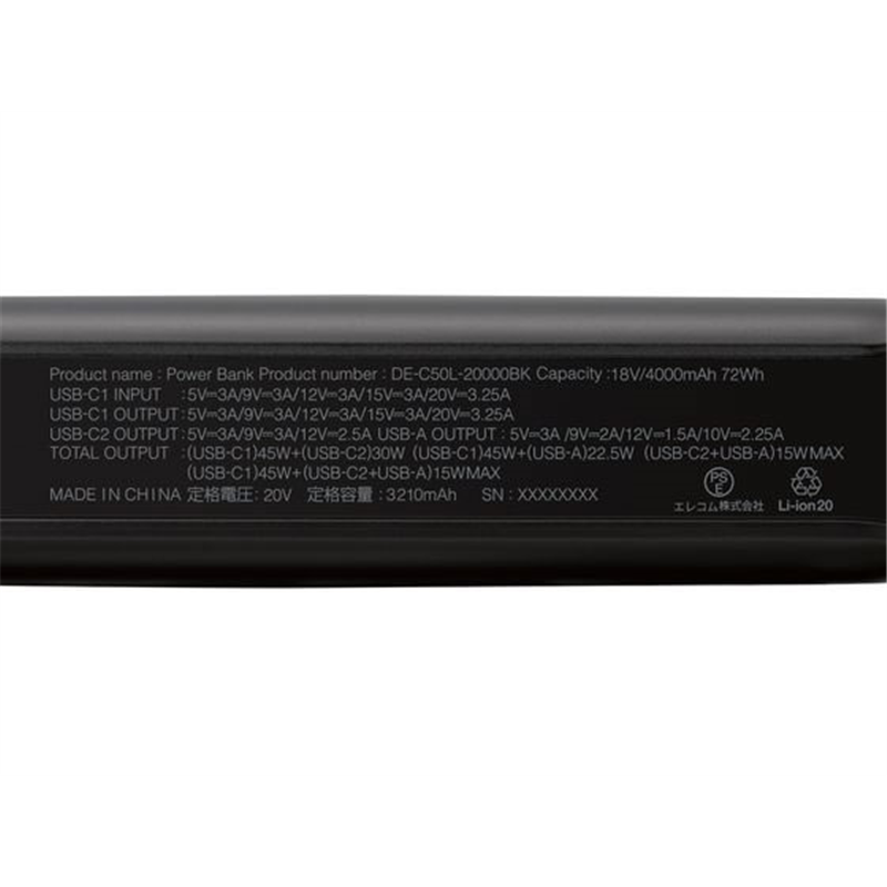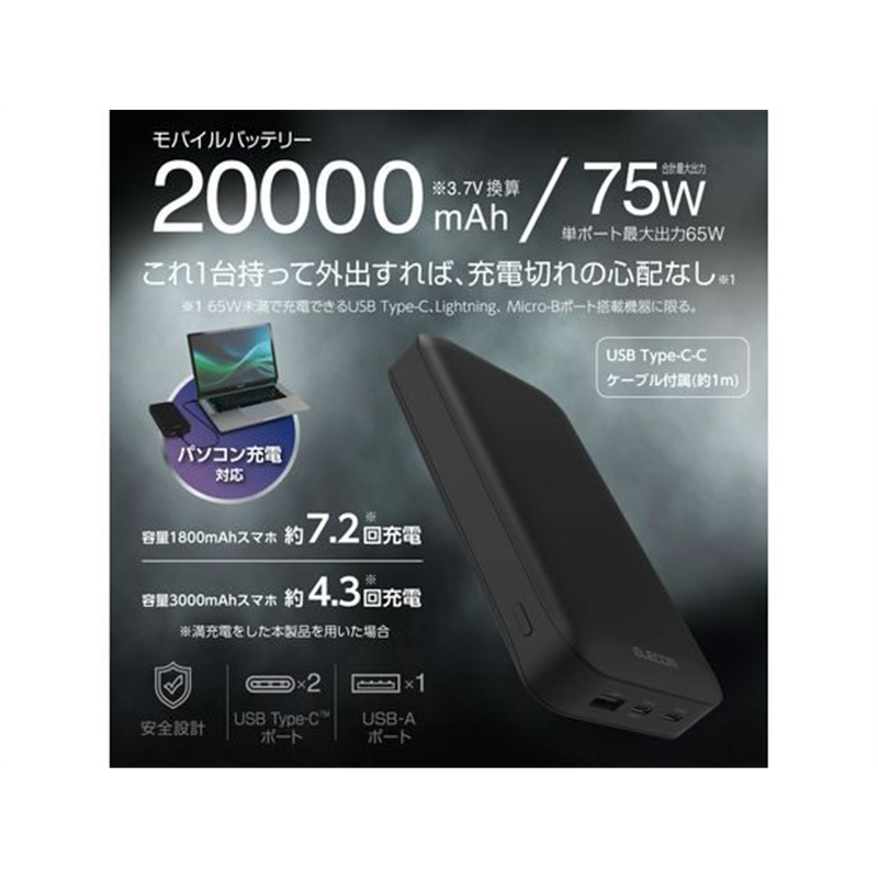 エレコム モバイルバッテリー 20000mAh ブラック DE-C50L-20000BK 1個(ご注文単位1個)【直送品】