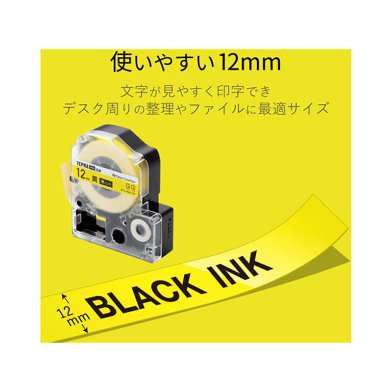 カラークリエーション テプラPRO互換テープ 12mm 黄黒字 CTC-KSC12Y 1個(ご注文単位1個)【直送品】