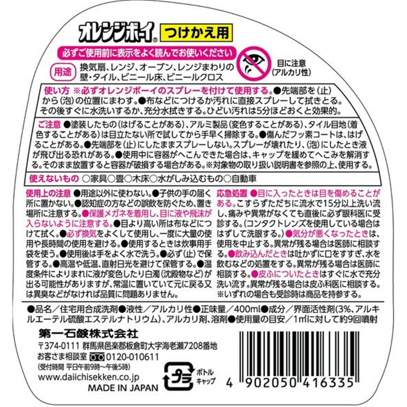 第一石鹸 オレンジボーイ 強力クリーナー つけかえ用 400mL 1個(ご注文単位1個)【直送品】