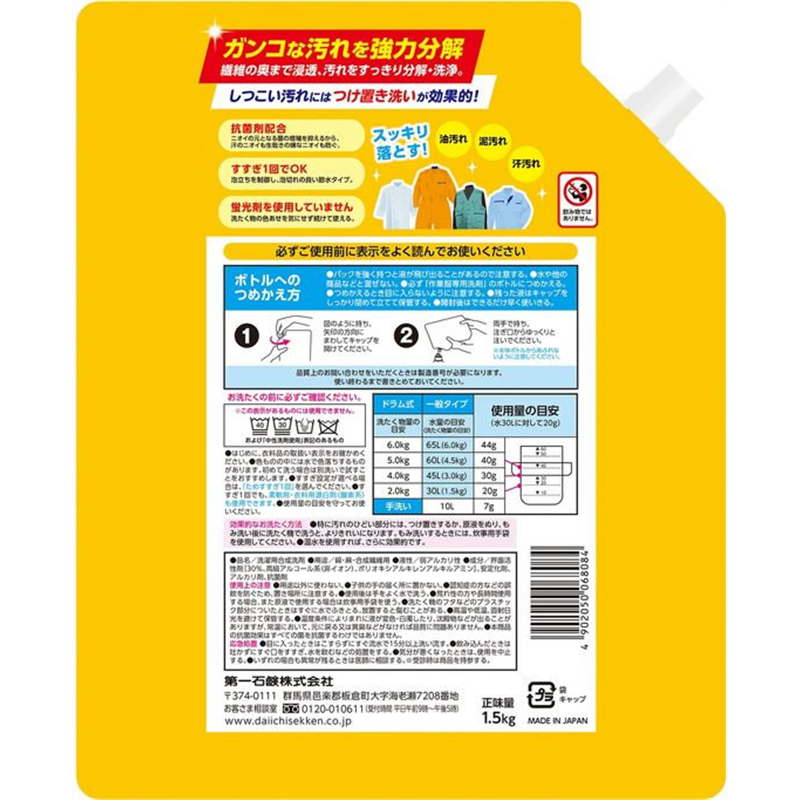 第一石鹸 ランドリークラブ 作業服専用液体洗剤 詰替 1.5Kg 1個(ご注文単位1個)【直送品】