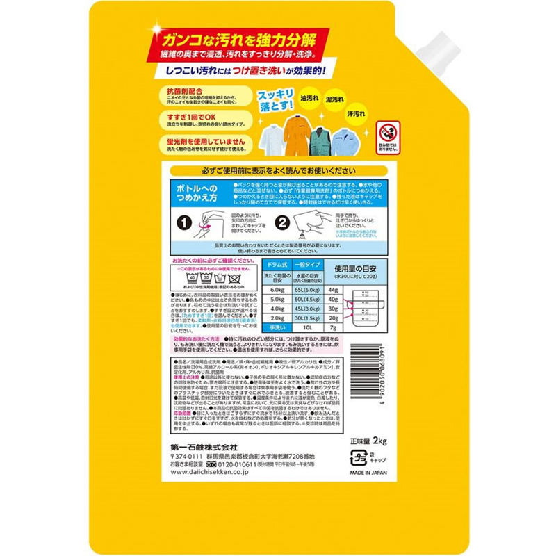第一石鹸 ランドリークラブ 作業服専用液体洗剤 詰替用 2Kg 1個(ご注文単位1個)【直送品】