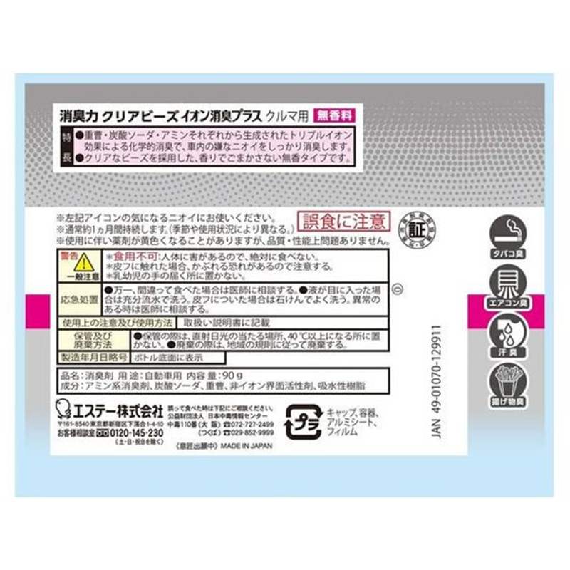 エステー 消臭力 クリアビーズイオン消臭プラス クルマ用本体 無香料 1個(ご注文単位1個)【直送品】