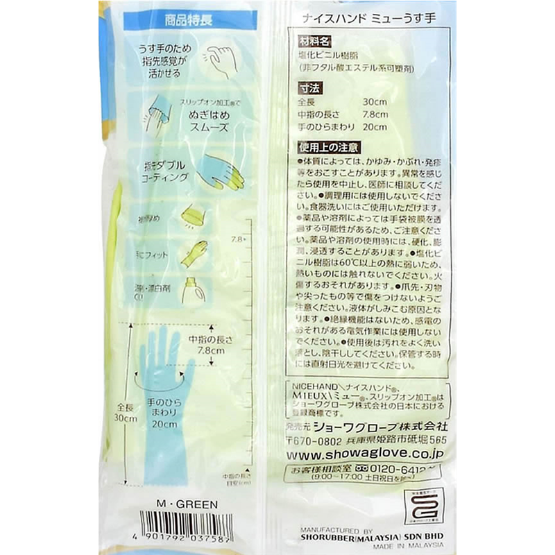 ショーワ グローブ ナイスハンド ミューうす手(N)グリーン M 1双(ご注文単位1双)【直送品】