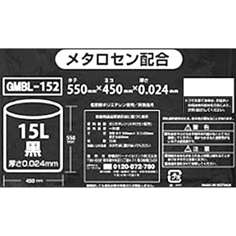 ポリゴミ袋(メタロセン配合) 黒 15L 15枚×20袋 GMBL-152 1箱(ご注文単位1箱)【直送品】